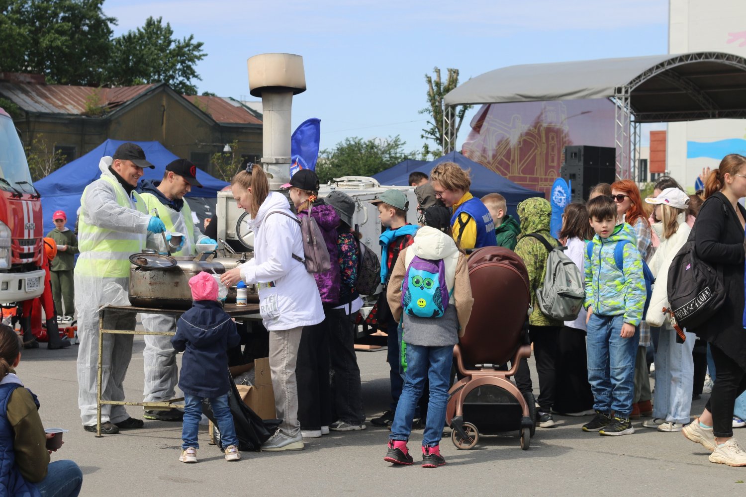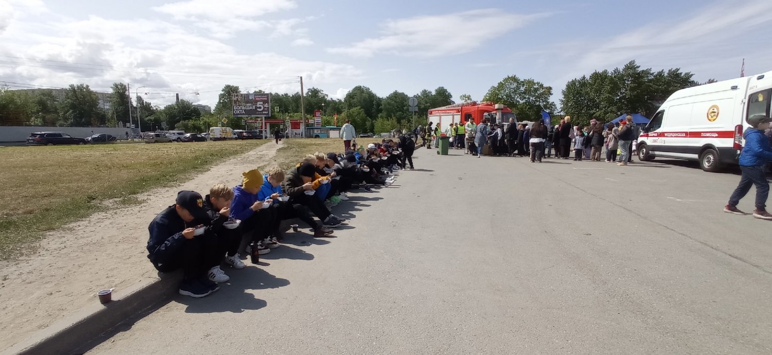На станции «Здоровый район», команда АНО ДПО «Общество за безопасность», совместно с коллегами из Детская поликлиника № 68 | Красногвардейский показывали малышам Красногвардейского района оснащение пожарного автомобиля и автомобиля скорой медицинской помощи, а также учили детей оказанию первой помощи! На территории добравольцами была развернута полевая кухня. Все желающие отведали солдатскую кашу и запили ароматным горячим чаем. Царила дружеская атмосфера на протяжении всего дня!