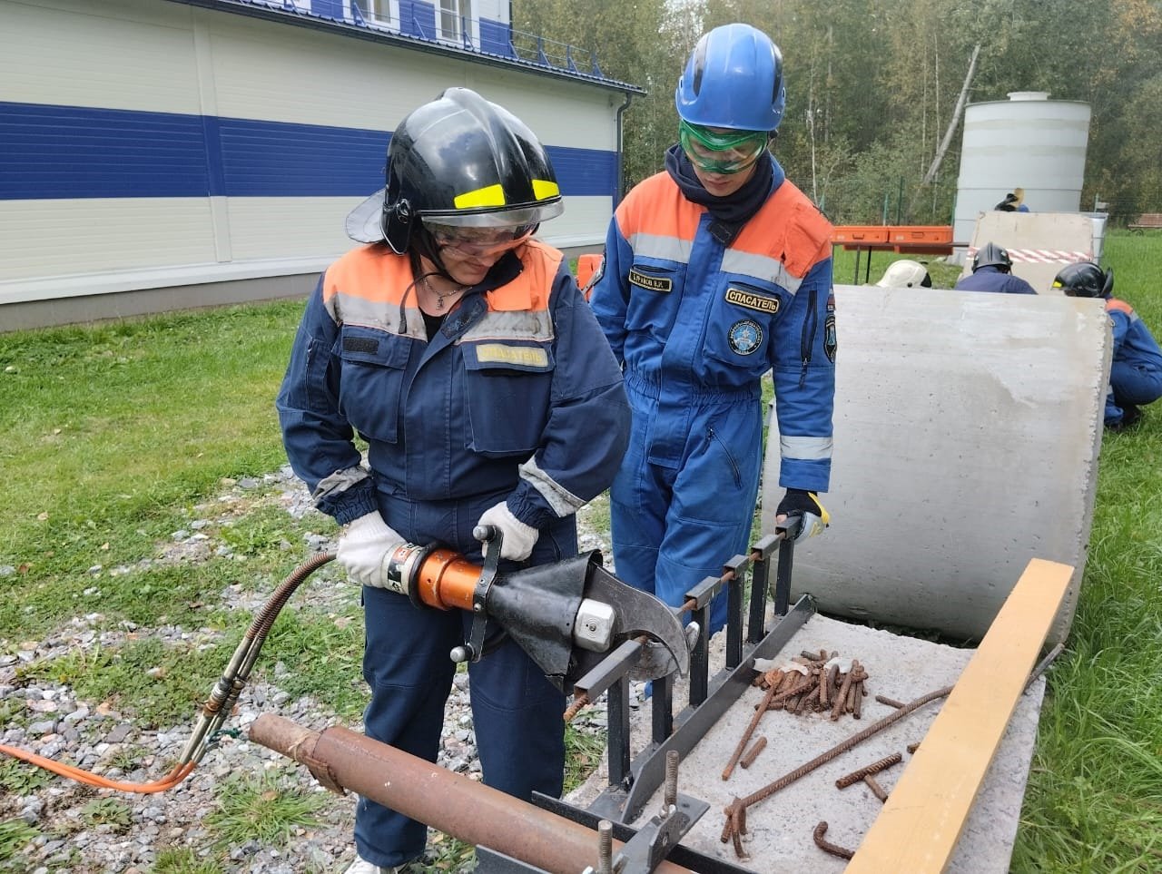 Первый- это работа с ручным гидравлическим насосом и кусачками, бензорезом и бензопилой.