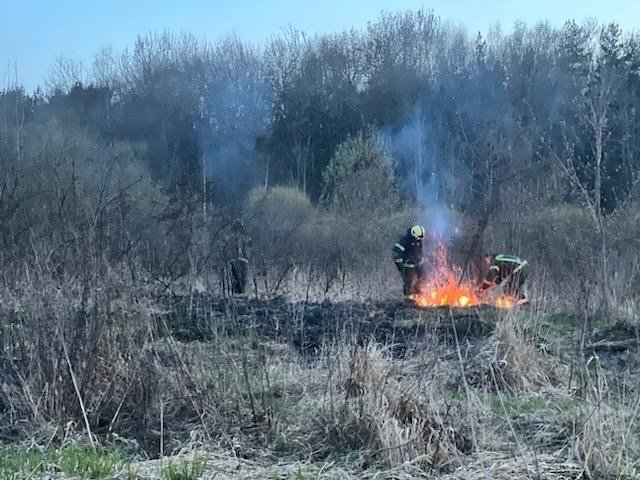- Пожар. Горит трава. По прибытию горение травы по фронту 70 м. Тушили с помощью ранцев и подручных средств. Ликвидация открытого горения.