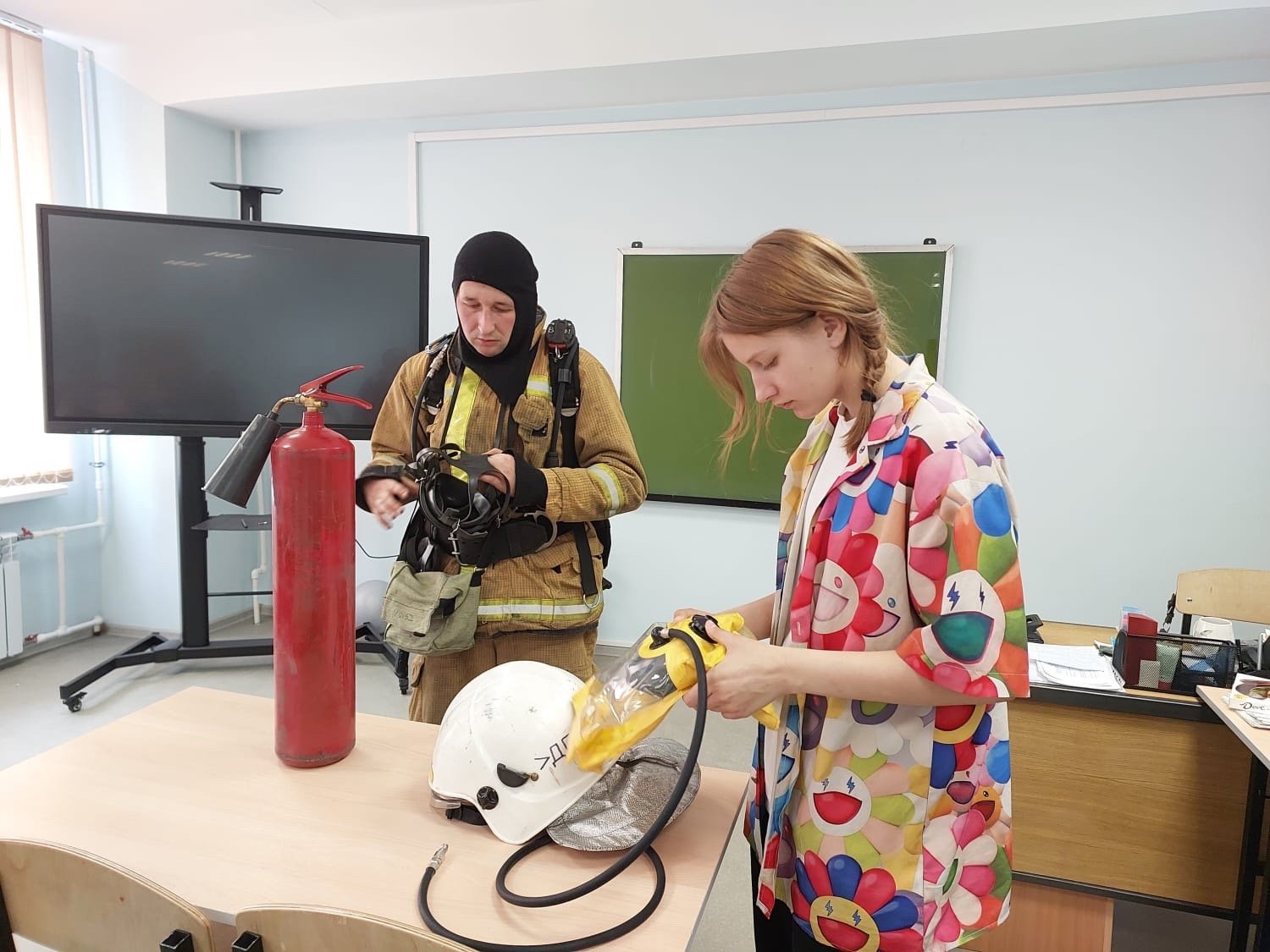 В ходе мероприятия обучающимся было продемонстрировано пожарно-спасательное оборудование и показаны варианты его применения.