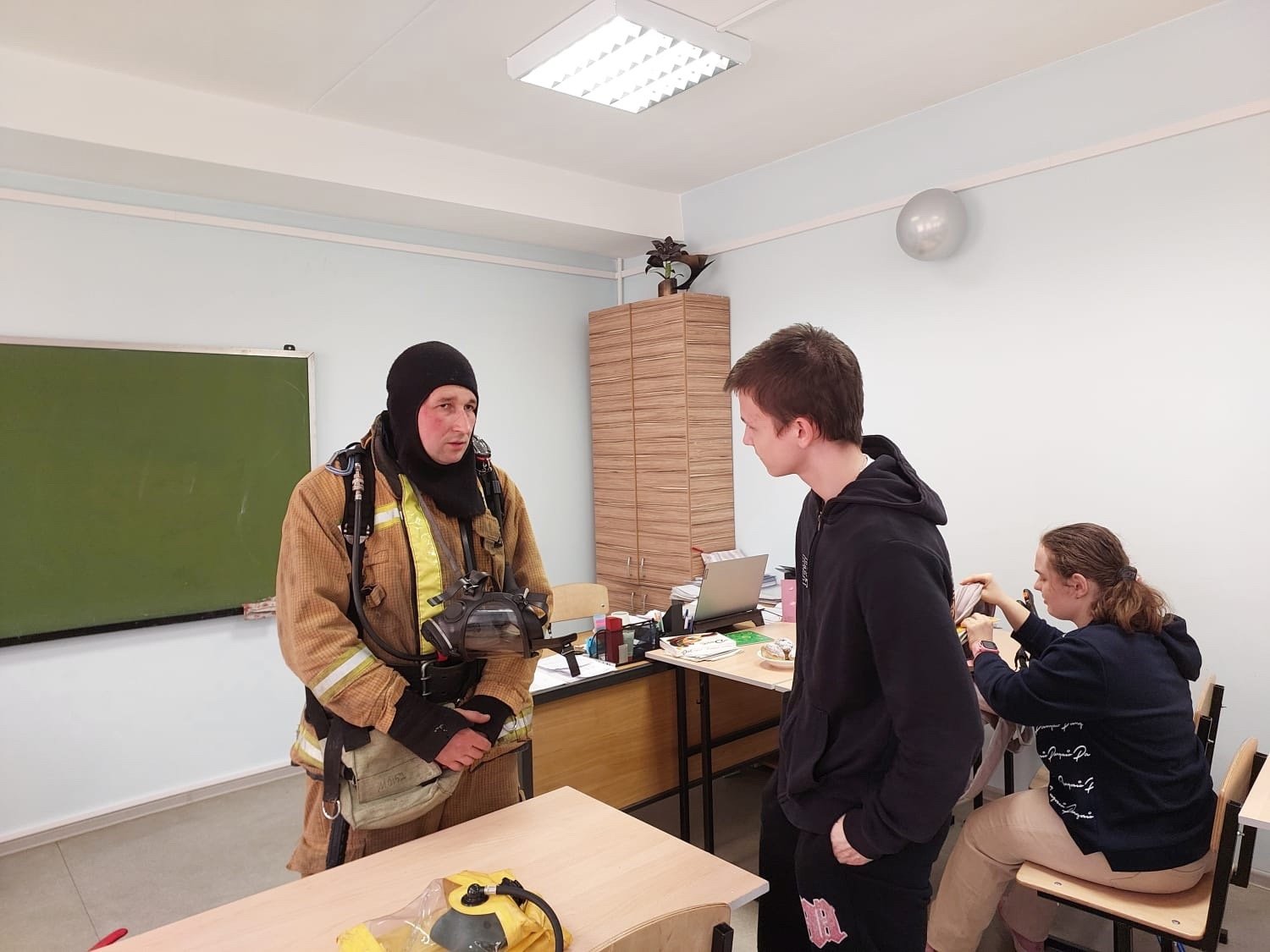 На данном мероприятии обучающимся было рассказано о правилах эвакуации при пожаре, использовании средств защиты органов дыхания.