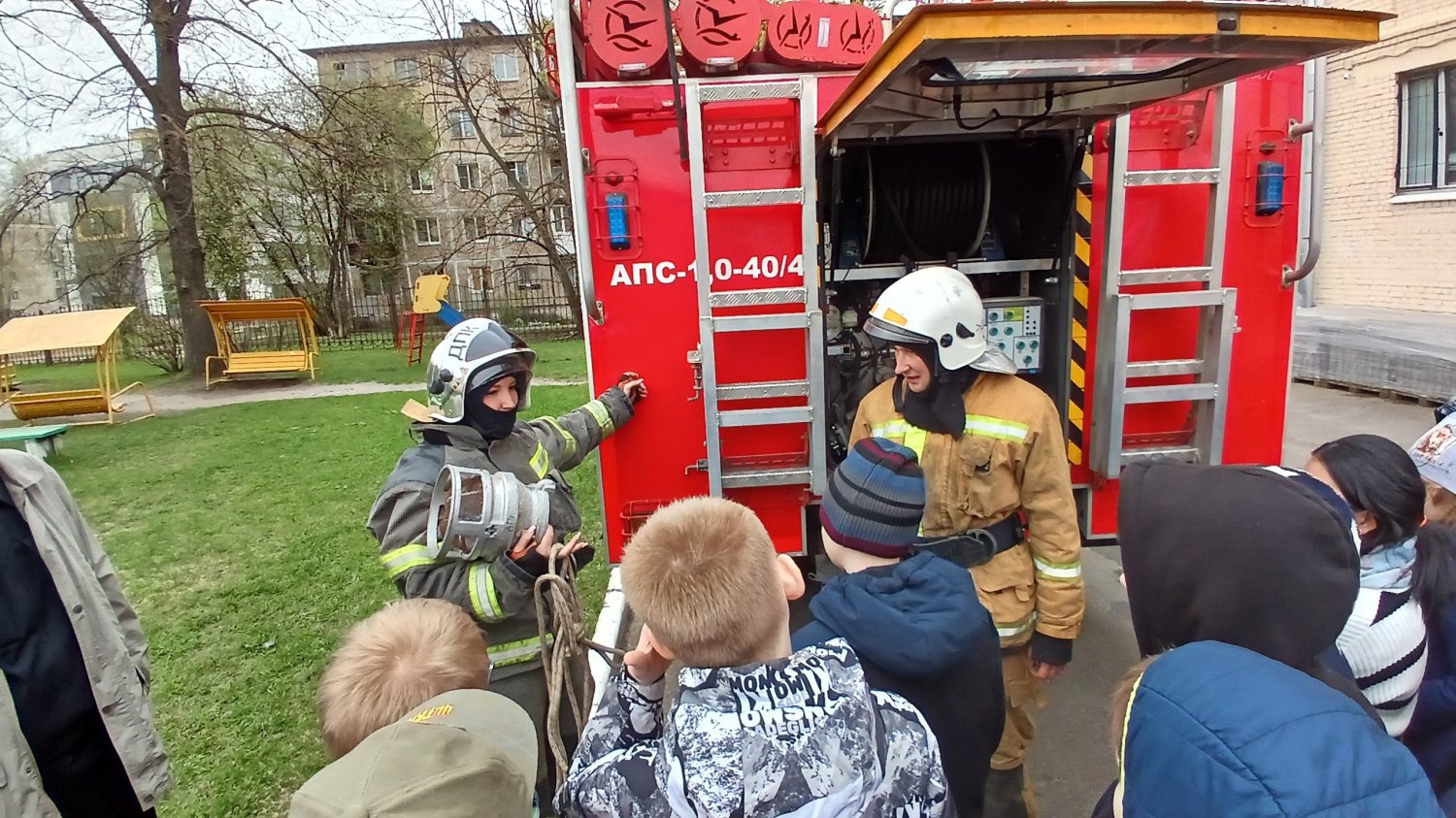 На данном уроке рассказали про оборудование, которое находится в пожарной машине, средства спасения людей при пожаре и ЧС.