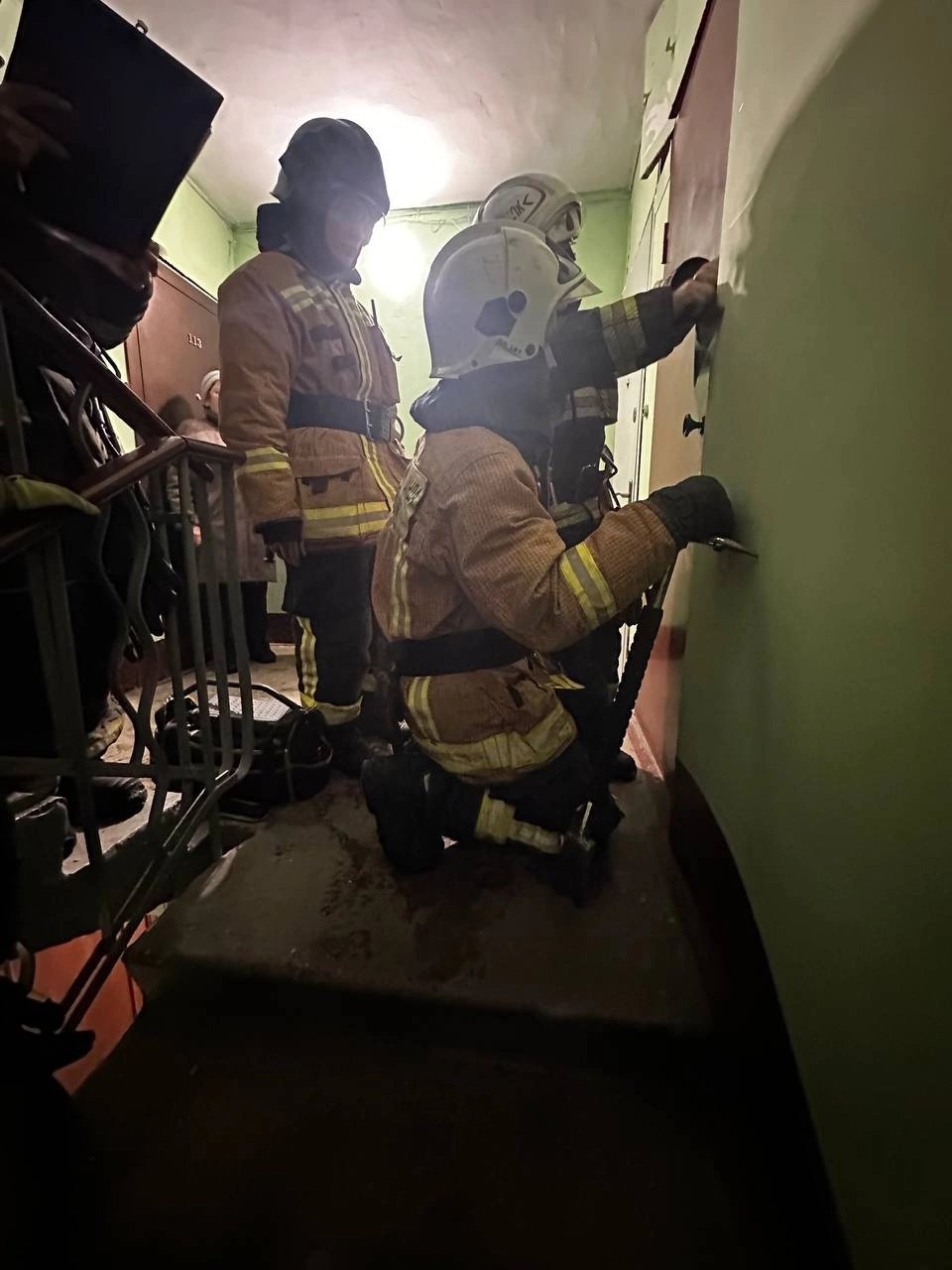 4) Вскрытие двери. На месте сотрудники полиции. Вскрыли дверь шанцевым инструментом, внутри квартиры пожилая женщина, медицинская помощь не потребовалась.